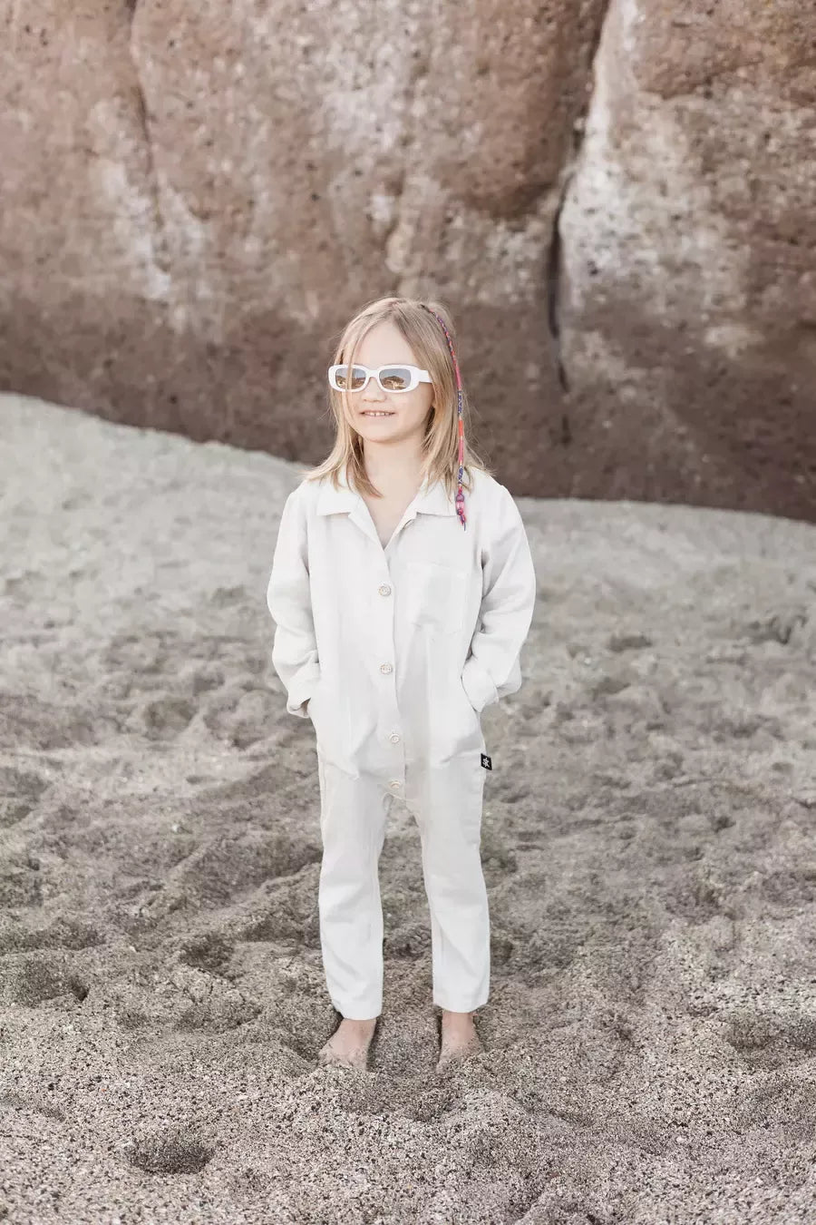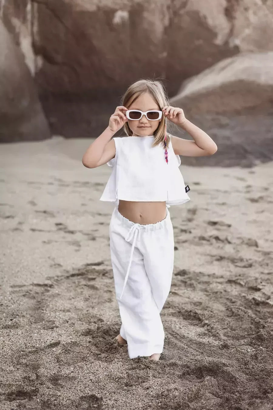 Sofa Killer baltos spalvos vaikiškas lininis kostiumėlis su kelnėmis